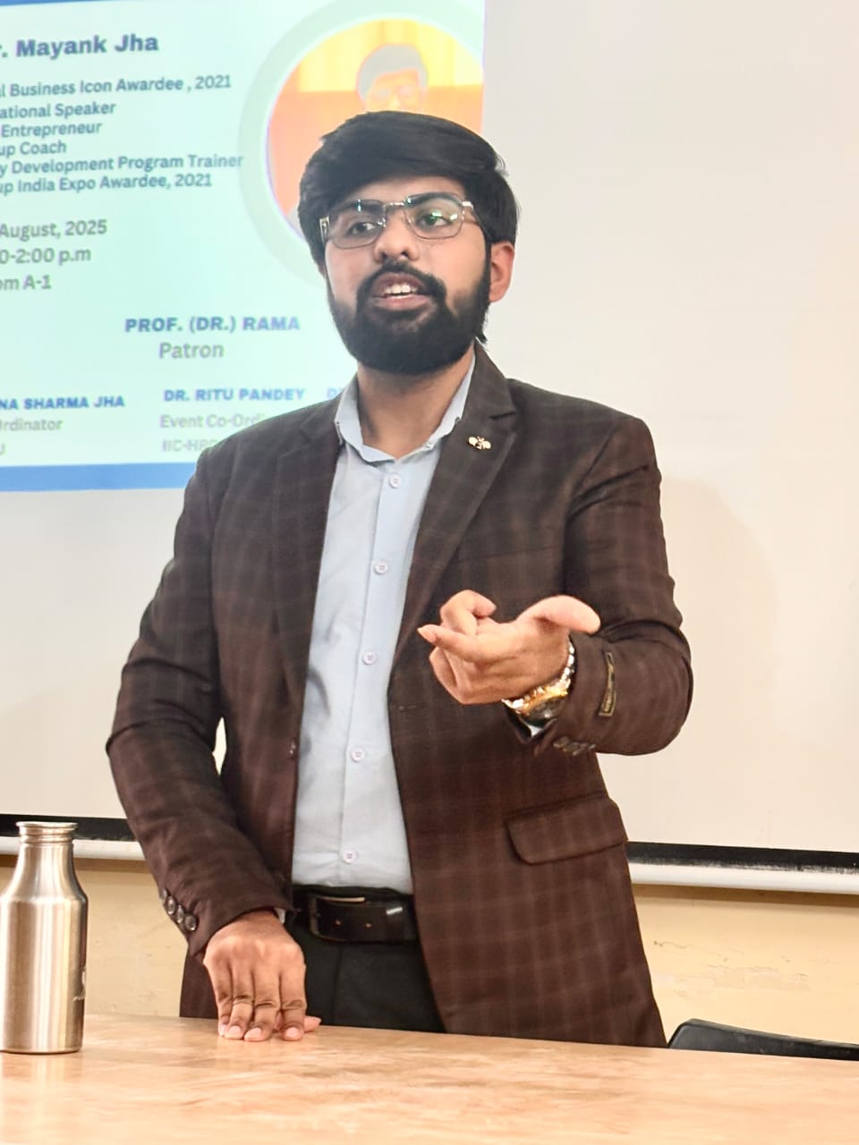 The session concluded with an engaging Q&A, where students raised thoughtful questions around startup challenges, risk-taking, team building, and the mindset required to move from ideation to execution.