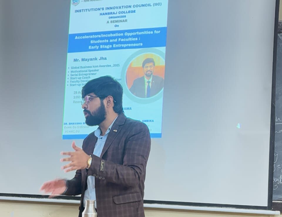 I was invited by the Institution’s Innovation Council (IIC), Hansraj College, University of Delhi, to conduct a session on early-stage entrepreneurship.