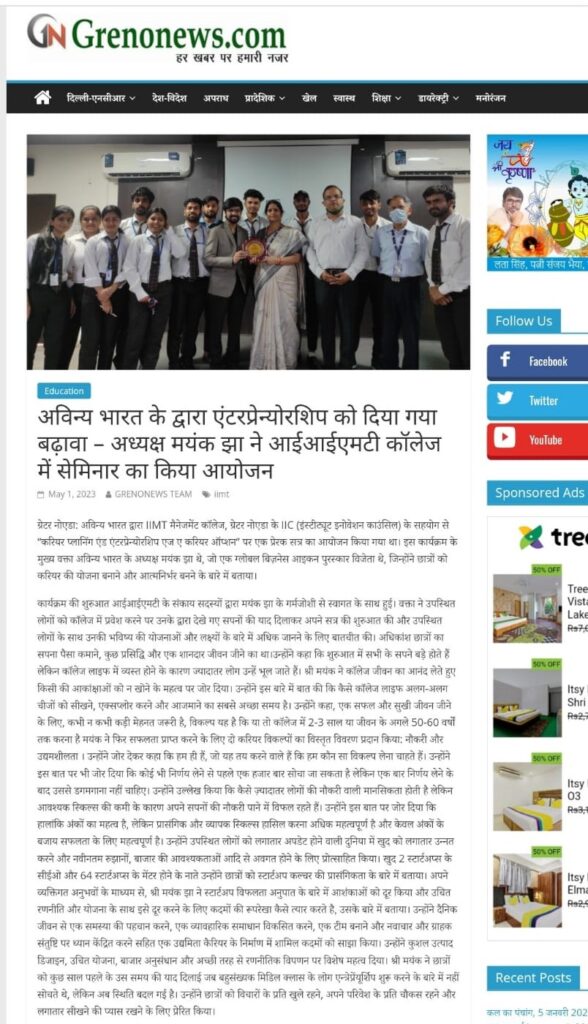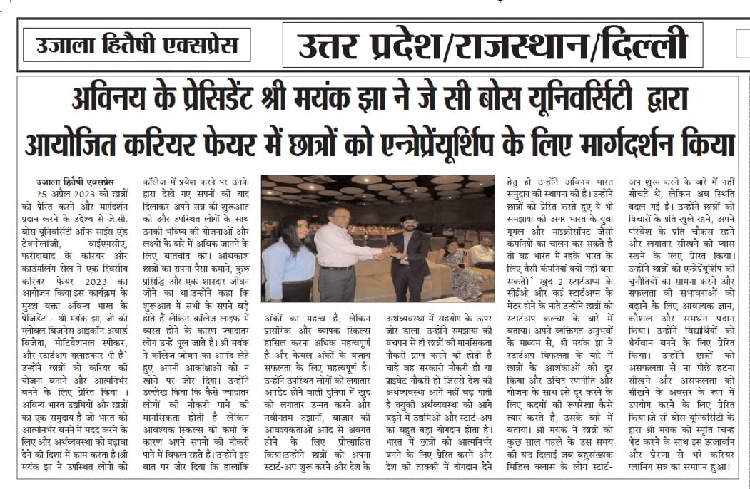 Appearances for being invited by Universities/Colleges for inspiring students on Entrepreneurship & guiding them